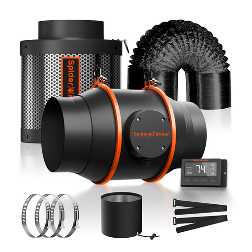 View full detailsSpider Farmer® 6” Inline Fan Kits 402CFM with GGS Controller Carbon Filter & Ducting Combo Grow Tent Ventilation System The 2025 version featur...