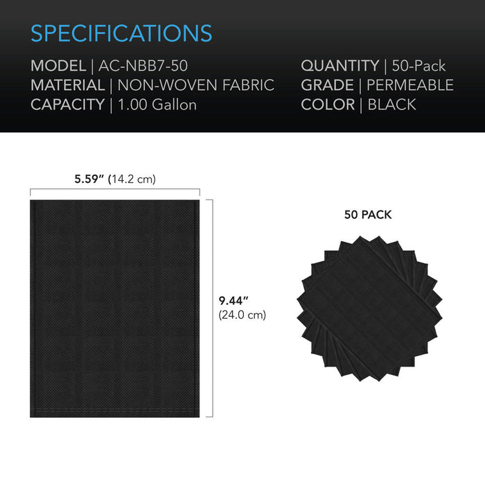 Capacity: 1 Gallon | Dimensions: 5.59 x 9.44 in. | Material: Non-Woven Fabric | Quantity: 50-Pack