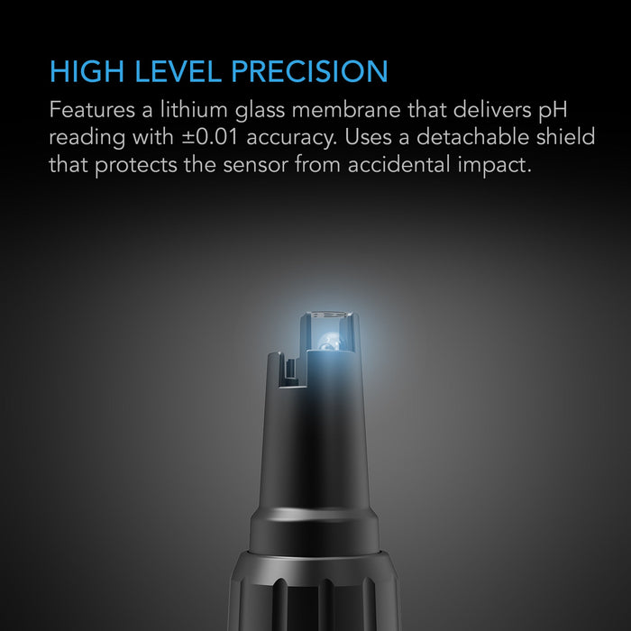 Utilizes a sensitive lithium glass membrane sensor to deliver instant pH readings with pinpoint accuracy.