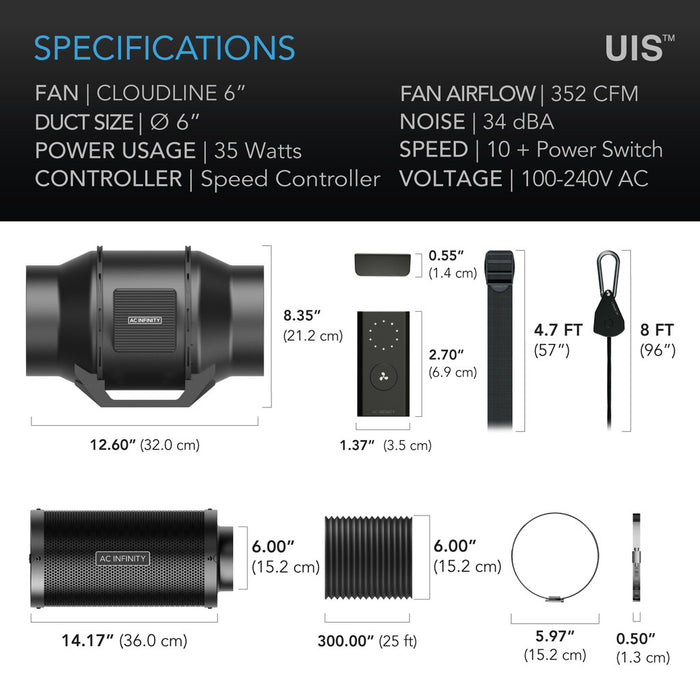Features the CLOUDLINE LITE inline fan with speed controller, delivering silent and efficient performance.