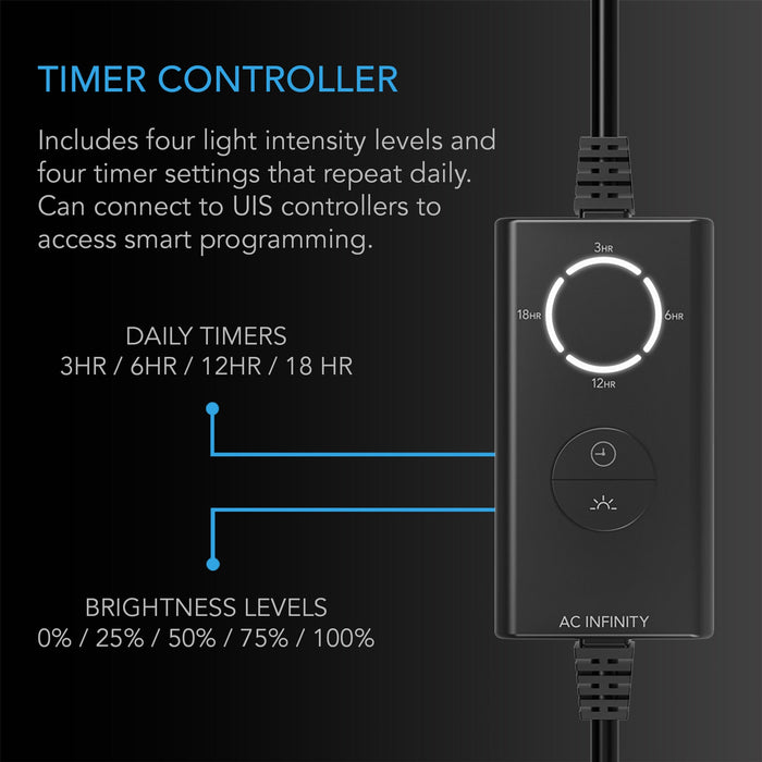 Includes two LED lighting bars that provide luminosity to help strengthen your seedlings’ stems and ensure their long-term health. The dome is specially shaped to fit these strip lights to provide a platform to eliminate the need to purchase and mount external lighting. Features a timer controller with four dimming levels and timer settings that repeat daily to further maximize seedling growth.