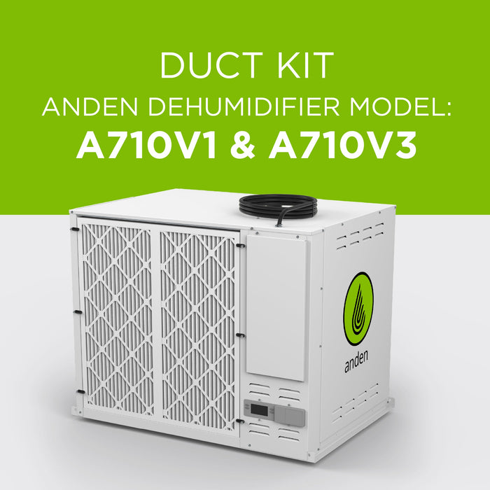 The Anden 5859 round duct kit for the A710V1 and A710V3dehumidifier has inlet and outlet collars designed to fit 24” round duct.