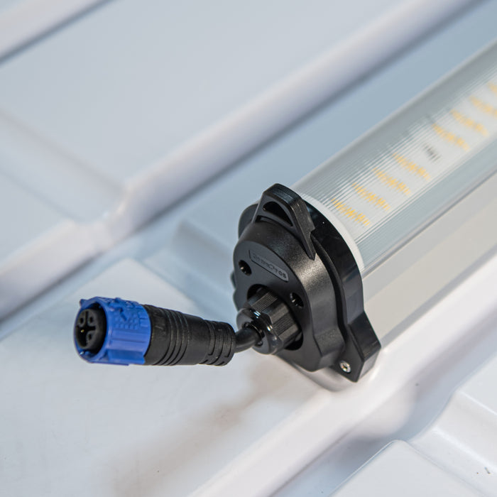 GrowPros Under Canopy Lights (2024 and newer) now use a push-lock interconnect cable. Cable sold separately. This new push-lock cable is not compatible with pre-2024 models.