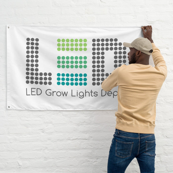 Brighten up your grow space by adding this LED Grow Lights Depot flag to your wall. Your flag won’t crease or shrink thanks to the polyester material and will last a long time.