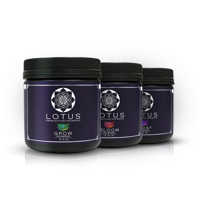 The Lotus Nutrients Starter Kit will simplify your growing experience. This Kit contains our Pro Series Grow, Boost, and Bloom Nutrients and is everything you need to get growing successfully.