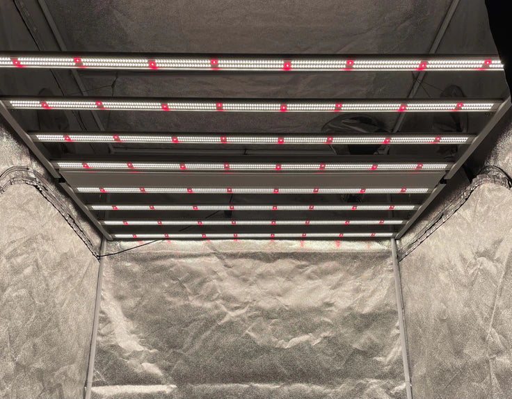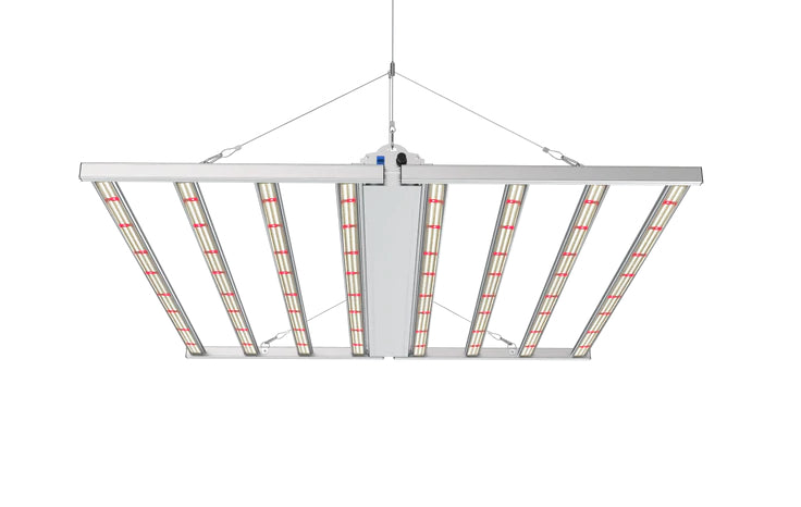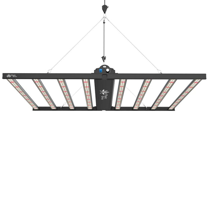 This indoor plant grow light has the popular design of 8 lighting bars focused on distributing more light as even as possible across the plant canopy. Plus, this LED grow light offers V1 fully spectrum to adapt to each phase of the plant cycle. High efficacy of 2.7 µmol/j and up to 760 wattage power consumption contribute to higher efficiency growing operation.