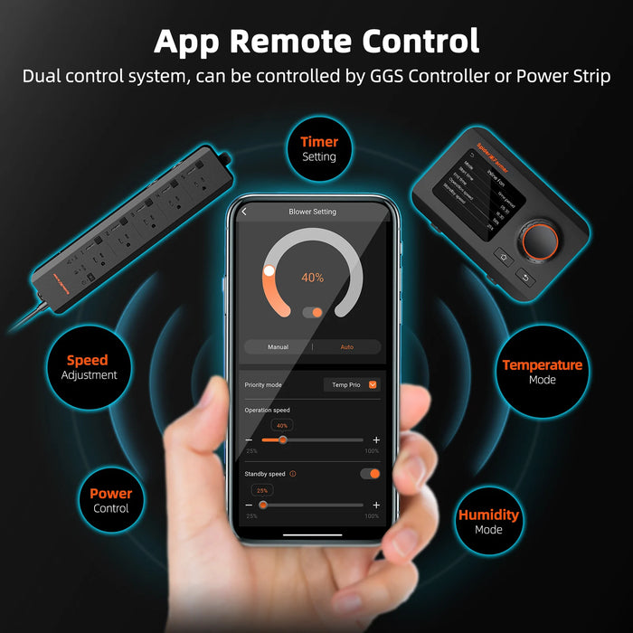 The 2025 version features a design with an RJ12 port, programmable controller change to GGS controller. Adjustments can be made through the Spider Farmer app.