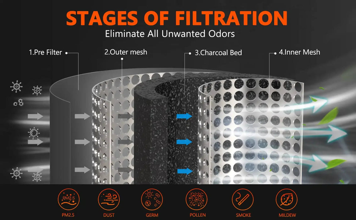 Superior Carbon Quality- Spider Farmer carbon filters use highest grade, granular Australian activated charcoal, which gives you better adsorption and superior carbon porosity to Air Filtration. Our filters scrub air better and have longer lifespan.